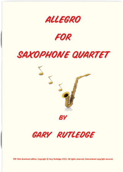 "Allegro for Saxophone Quartet" is written for Soprano, Alto, Tenor and Baritone saxophones. The piece is suitable for advanced players and uses most of the ranges of each instrument. All parts are included in the publication.